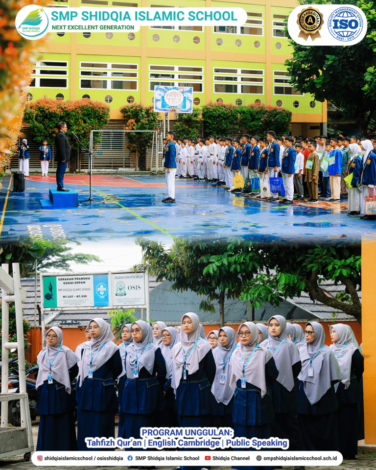 Senin, 14 Juli 2025 Pelaksanaan Apel Pagi sebagai rangkaian pembukaan kegiatan tahun pelajaran baru dan Pembukaan Masa Pengenalan Lingkungan Sekolah (MPLS) Tahun Pelajaran 2025/2026 di SMP Shidqia Islamic School.