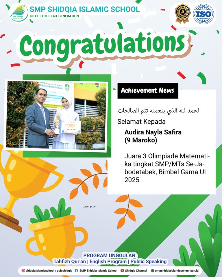 #shidqiaislamicschool #sekolahislam #sekolahfavorit #sekolahislambekasi #sekolahislamjatiasih #sekolahislamjatisari #sekolahkotabekasi #smpislam #sekolahislamterpadu #smpitbekasi #smpterbaikbekasi #smpswastaunggulan #smpitshidqiaislamicschool #sekolahislami #sekolahkeren #sekolahpenghafalquran #tahfizhquran #publicscpeaking #englishcambridge #ayomasukshidqia