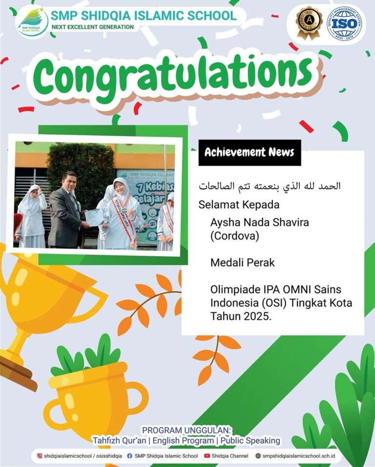 1. Aysha Nada Shavira (Cordova) – Medali Perak Olimpiade IPA OMNI Sains Indonesia (OSI) Tingkat Kota Tahun 2025.