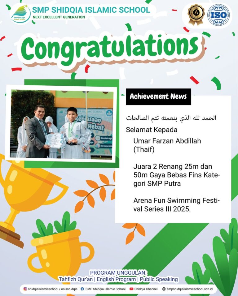 3. Umar Farzan Abdillah (Thaif) – Juara 2 Renang 25m dan 50m Gaya Bebas Fins Kategori SMP Putra 2025.