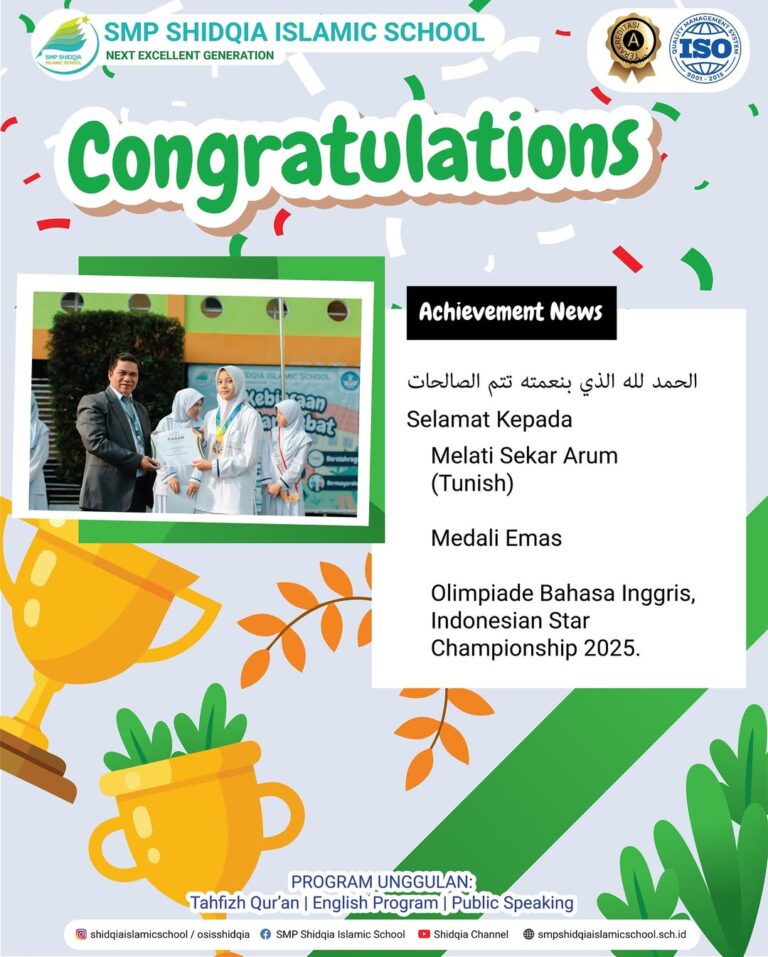 4. Melati Sekar Arum (Tunish) – Medali Emas Olimpiade Bahasa Inggris, Indonesian Star Championship 2025.