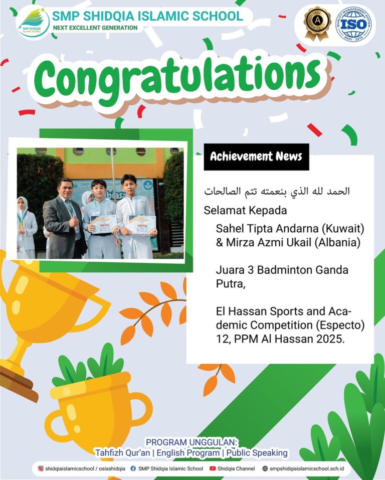 6. Sahel Tipta Andarna (Kuwait) & Mirza Azmi Ukail (Albania) – Juara 3 Badminton Ganda Putra, dalam El Hassan Sports and Academic Competition (Especto) 12, PPM Al Hassan 2025.