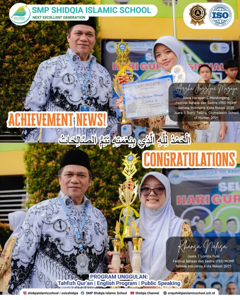1. Khansa Nafisa (Sevilla) – Juara 1 Lomba Membaca Puisi, Festival Bahasa dan Sastra (FBS) MGMP Bahasa Indonesia Kota Bekasi 2025.