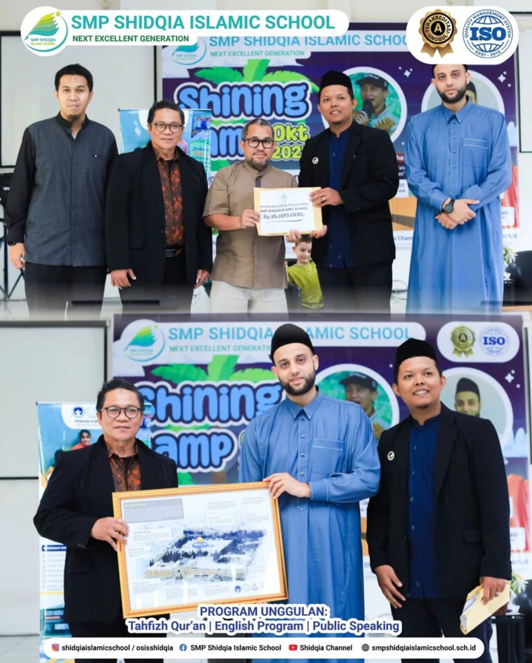 Dalam kesempatan yang penuh berkah ini, juga dilakukan penyerahan donasi sebesar Rp16.000.000 dari Keluarga Besar SMP Shidqia Islamic School kami untuk saudara-saudara di Palestina.