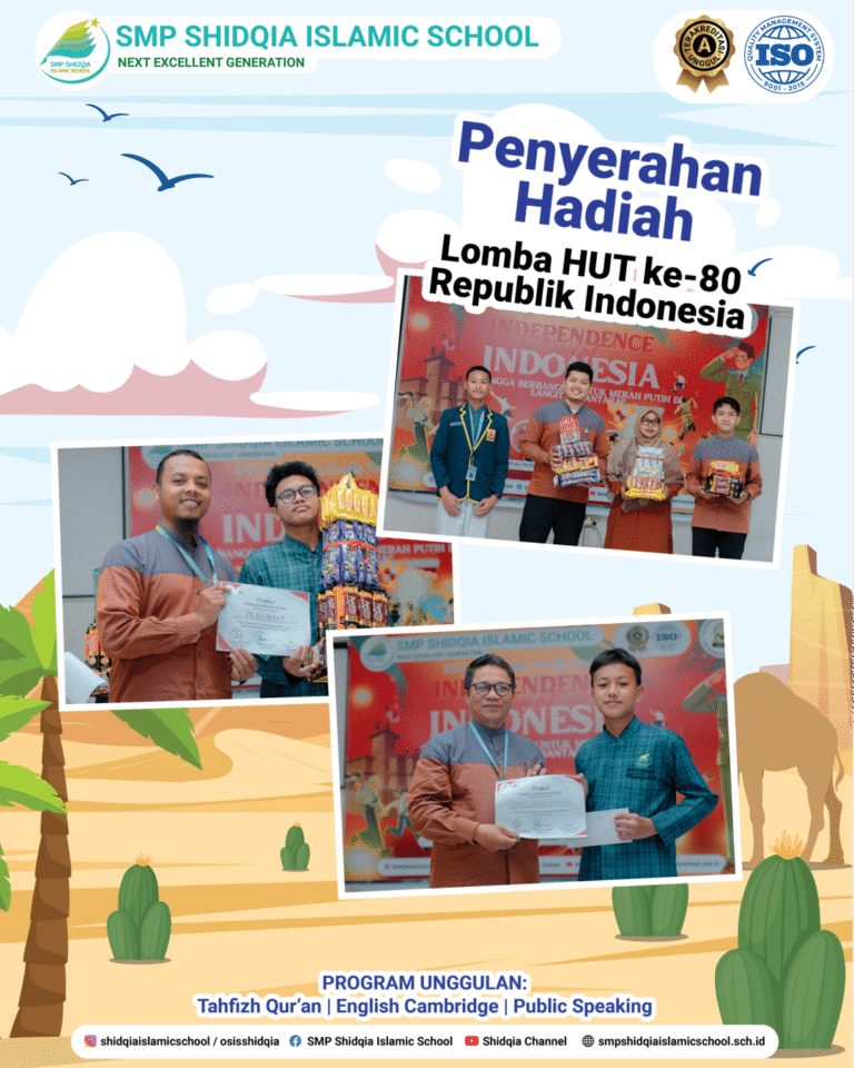 Alhamdulillah.. Jum’at, 22 Mei 2025 telah terlaksana penyerahan hadiah lomba dalam rangka HUT ke-80 Republik Indonesia di SMP Shidqia Islamic School.